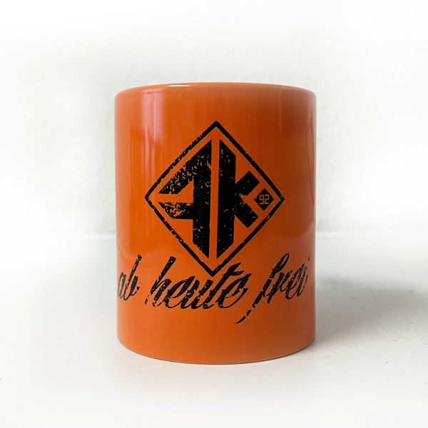 Frontalkraft Logo zentriert auf der Mitte der Tasse.